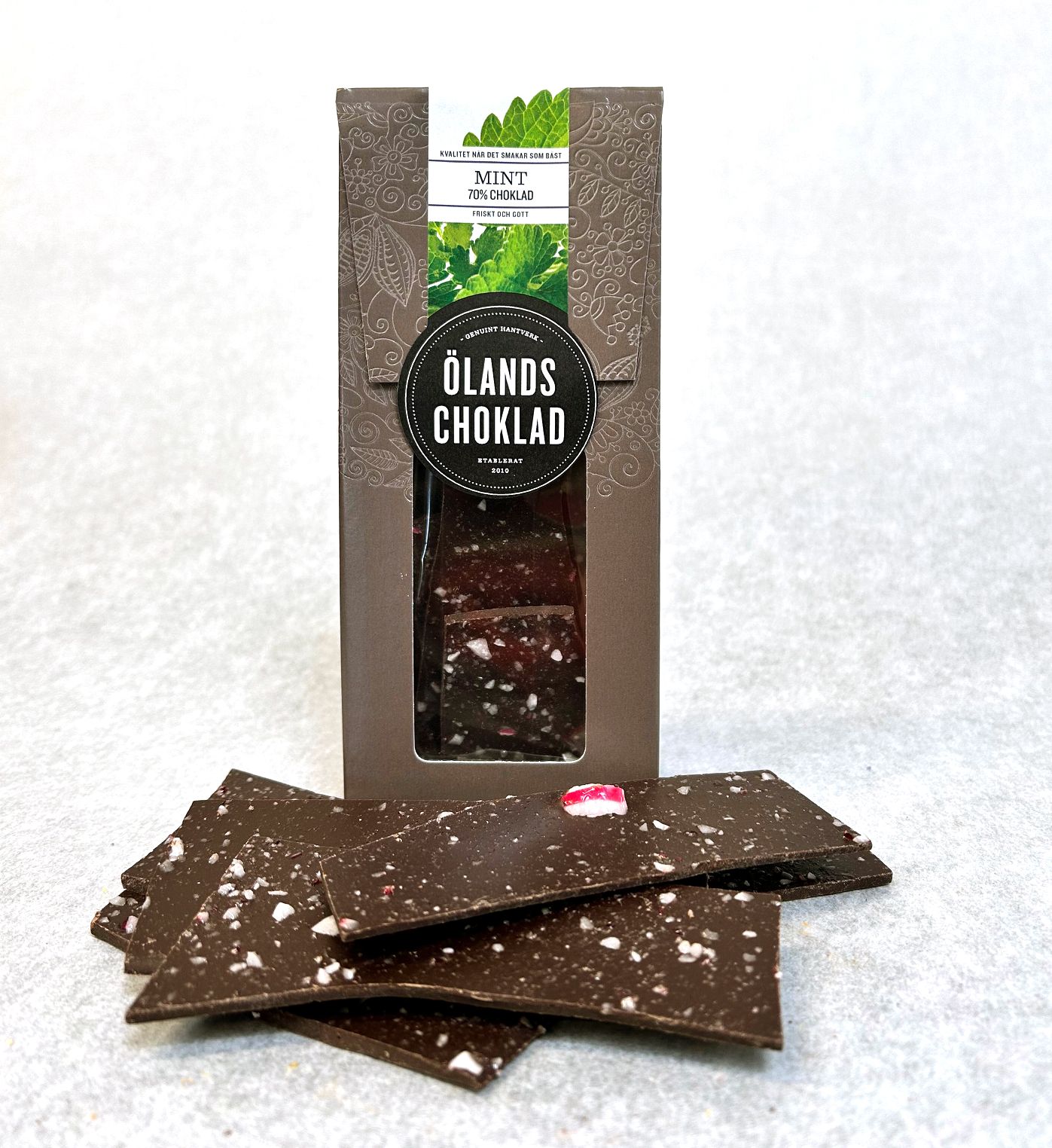 Kakaomassa, socker, kakaosmör, mintolja, glykos, citronsyra, E100, E200, SOYA LECITIN, naturlig vanilj.